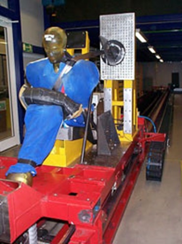 E4 e-chain system® in a crash test carriage with an acceleration up to 784 m/s² and speed of 22 m/s.