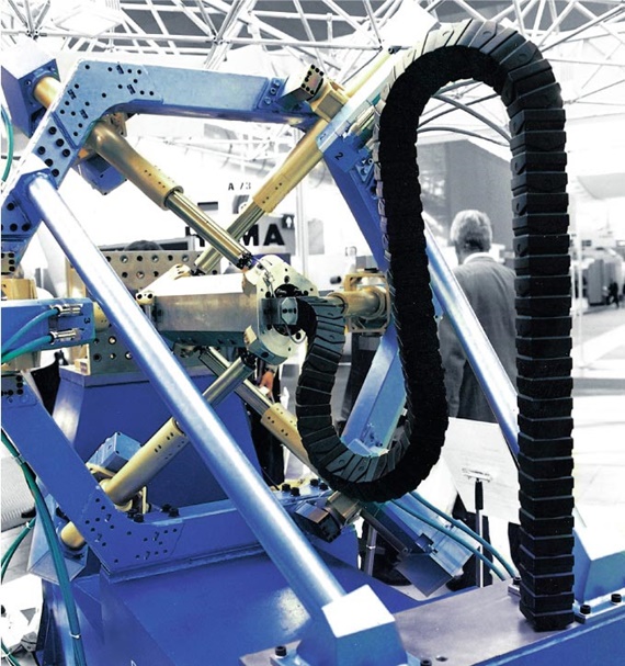The triflex® series has been developed to safely guide cable during a 3D movement. In this case, the flexibility of a hose is combined with the stability of an e-chain® with a fixed, defined radius. This unique modular design enables very complex movements. Combination of chain links moving in single, double and triple axes are possible in an e-chain®.