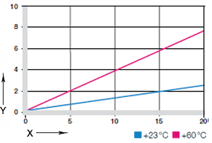 The upper short-term application temperature is +110℃. With increasing temperatures, the compressive strength of iglidur® A180 bearings decreases. Fig. 02 clarifies this connection. The temperatures prevailing in the bearing system also have an influence on the bearing wear. An additional securing is recommended at temperatures higher than +60°C.