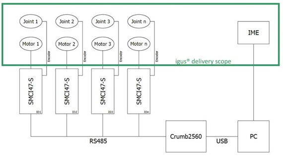 igus® stepper motors, number corresponding to the number of axes of the arm